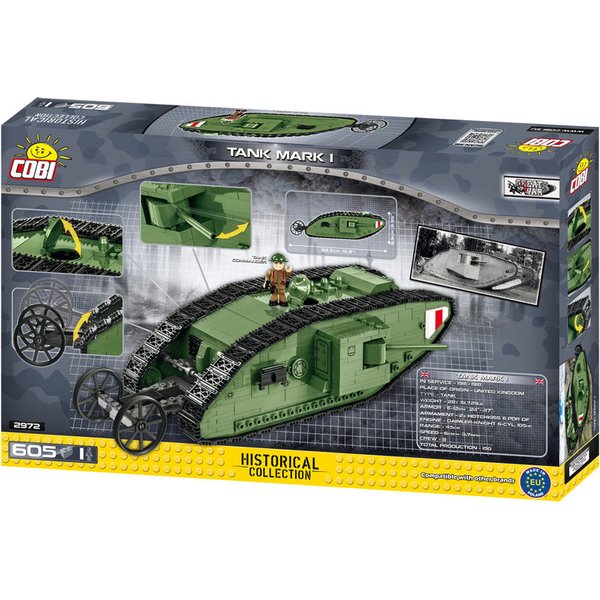 Tank Mark I serii Small Army - I wojna światowa to brytyjski czołg, który jako pierwszy na świecie został użyty w celach bojowych podczas I wojny światowej. Pojazd zostasł wyposażony w 2 armaty oraz karabiny maszynowe.