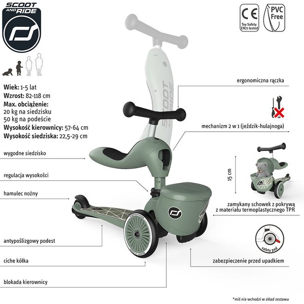 Jeździk, hulajnoga Highwaykick 1 z zamykanym schowkiem Scootnadride to atrakcyjna wizualnie zabawka, która zaspokaja różnorodne potrzeby Twojego dziecka.