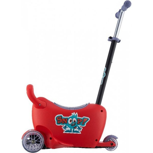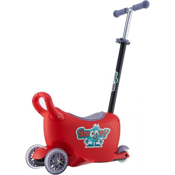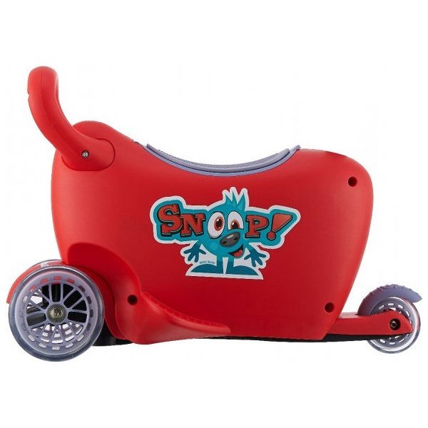 Snoop to idealne rozwiązanie dla dzieci, które przy okazji zabawy będą aktywnie spędzać czas i trenowało utrzymywanie równowagi. Ten niezwykły jeździk łączy w sobie 3 funkcje: jeździk ze schowkiem i rączką dla rodzica, jeździk-rowerek-kuferek, hulajnoga. Wyposażony został w miękkie siedzisko i wyprofilowane podpórki, które mają zapewnić komfort podczas użytkowania go przez małego rajdowca. Początkowo rodzice mogą kontrolować jazdę dzięki specjalnej rączce. Jednak gdy dziecko nauczy się już kierować jeździkiem, rączkę tą można bez problemu zdemontować i maluch może jeździć już w pełni samodzielnie. Takim kuferkiem kieruje się za pomocą balansu ciałem co jest niezwykłym ułatwieniem dla małego użytkownika. Ze Snoopem nie będzie trzeba się szybko rozstawać bo gdy tylko dziecko wyrośnie z jeździka, bez problemu przekształcimy go w hulajnogę. Jakby tego było mało w siedzisku ukryty jest kuferek w, którym maluch będzie mógł przewozić najpotrzebniejsze rzeczy. Można bez problemu schować tam zabawki jak i wodę gdy wybieramy się na plac zabaw.
