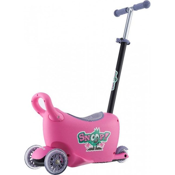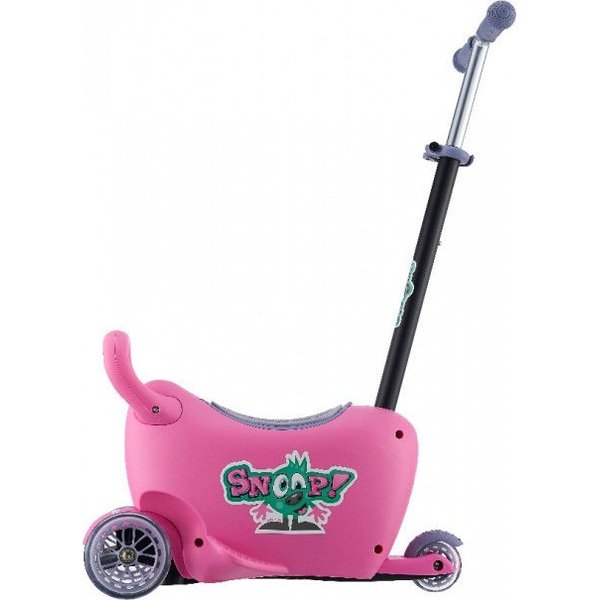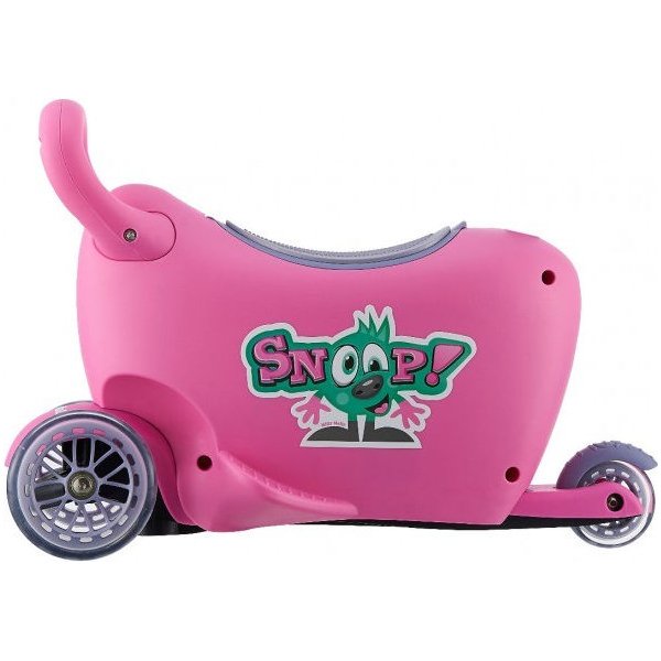 Snoop to idealne rozwiązanie dla dzieci, które przy okazji zabawy będą aktywnie spędzać czas i trenowało utrzymywanie równowagi. Ten niezwykły jeździk łączy w sobie 3 funkcje: jeździk ze schowkiem i rączką dla rodzica, jeździk-rowerek-kuferek, hulajnoga. Wyposażony został w miękkie siedzisko i wyprofilowane podpórki, które mają zapewnić komfort podczas użytkowania go przez małego rajdowca. Początkowo rodzice mogą kontrolować jazdę dzięki specjalnej rączce. Jednak gdy dziecko nauczy się już kierować jeździkiem, rączkę tą można bez problemu zdemontować i maluch może jeździć już w pełni samodzielnie. Takim kuferkiem kieruje się za pomocą balansu ciałem co jest niezwykłym ułatwieniem dla małego użytkownika. Ze Snoopem nie będzie trzeba się szybko rozstawać bo gdy tylko dziecko wyrośnie z jeździka, bez problemu przekształcimy go w hulajnogę. Jakby tego było mało w siedzisku ukryty jest kuferek w, którym maluch będzie mógł przewozić najpotrzebniejsze rzeczy. Można bez problemu schować tam zabawki jak i wodę gdy wybieramy się na plac zabaw.