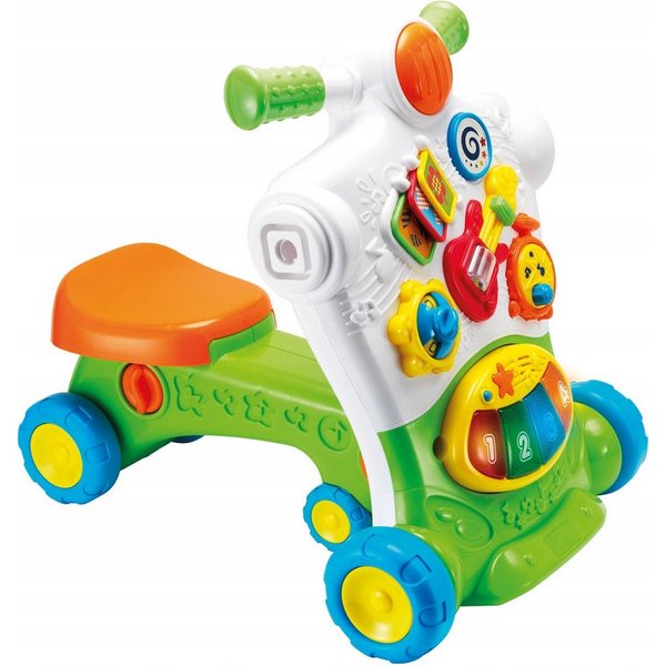 Multifunkcyjny pchacz - jeździk 3w1 z muzyką i dźwiękami to zabawa przy której każdy malec rozwinie umiejętności chodzenia i pogna do przodu!