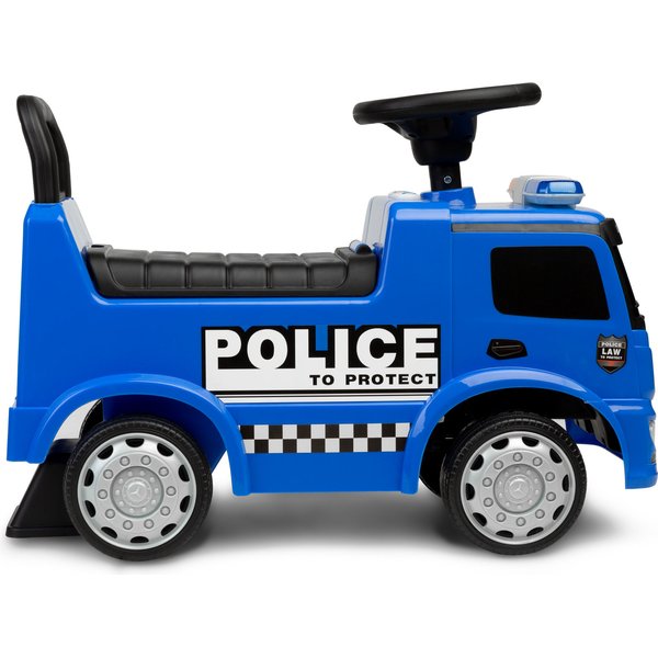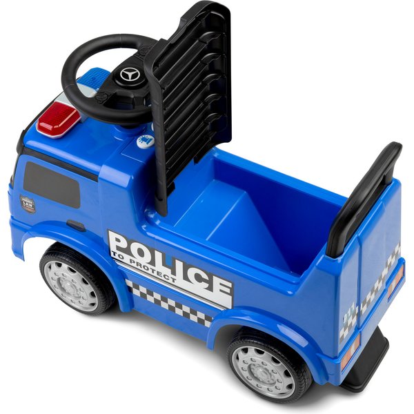 Model ten został wyprodukowany na licencji marki Mercedes. Realistyczny wygląd uzyskano dzięki niezwykłej dbałości o szczegóły i wysokiej jakości tworzywom sztucznym. Dźwięki klaksonu i wesołe światełka umilą Twojemu maluszkowi czas spędzony na zabawie w policjanta. Pojazd posiada mały schowek pod siedziskiem na wszystkie dziecięce skarby. Jazda dziecięcym pojazdem w policyjnym wydaniu to znakomity sposób na rozwój wyobraźni przestrzennej, zdolności motorycznych i koordynacji wzrokowo - ruchowej.