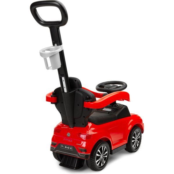 Ten model jest stylizowany pojazdem VW T-Roc i wyprodukowany na licencji Volkswagen. Duża dbałość o szczegóły i wysoka jakość wykonania jeździka sprawiają, że wspólne spacery w parku okażą się niezwykłą motoryzacyjną przygodą. Wygodne siedzisko, wysuwane podesty na nóżki dla zmęczonego malucha, poręcz chroniąca przed wypadnięciem to szczegóły, które doceni nie tylko maluch, ale także rodzic. Dla większej wygody zamontowano także rączkę do pchania jeździka oraz uchwyt na bidon. Jazda dziecięcym pojazdem to świetny sposób na rozwój wyobraźni przestrzennej, zdolności motorycznych i koordynacji wzrokowo - ruchowej dla Twojego dziecka.