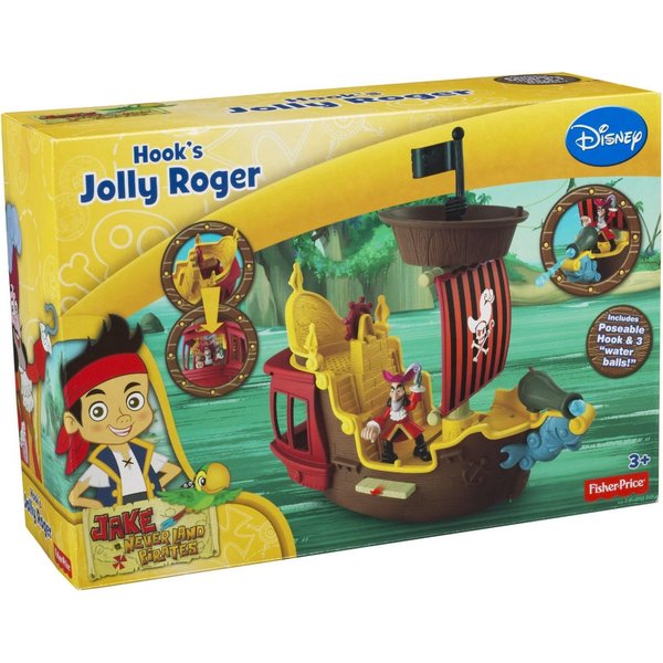 Wesoły Roger - statek Kapitana Haka - jest przygodowym zestawem do zabawy w odgrywanie ról, zawierającym zginającą się figurkę Kapitana Haka oraz armatę na pokładzie statku, która miota trzema wodnymi pociskami. Dzięki wysuwanej belce i tajnej zapadni w fotelu Kapitana Haka, zginająca się figurka Haka może obserwować sytuację z bocianiego gniazda lub poruszać się po statku. Czy kapitan Hak odnajdzie Jake'a i wygra pojedynek? To od Ciebie zależy, jak ta przygoda się potoczy!