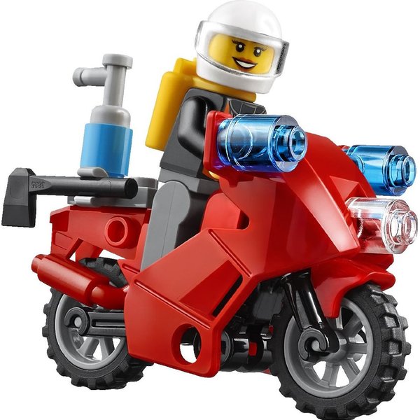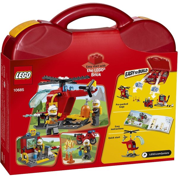 W miasteczku Lego jak zwykle dużo pracy! Pomóż strażakom ugasić pożar i zadbaj o bezpieczeństwo mieszkańców. Zbuduj helikopter z wężem strażackim, motocykl z gaśnicą oraz mini remizę strażacką i odgrywaj wymyślone historie. Z takim zestawem zabawa nigdy się nie znudzi!