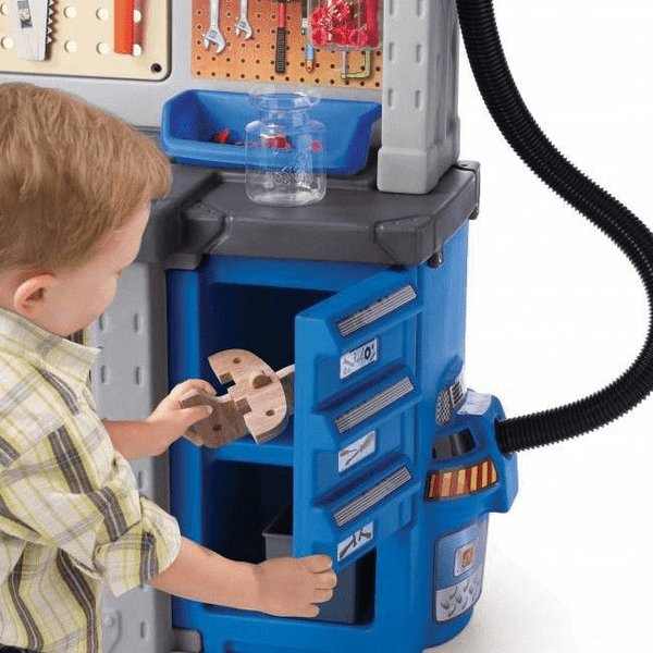 Dla małych mechaników marka Step2 stworzyła cudowny zestaw, który pozwoli maluchowi rozwijać zdolności motoryczne i wtajemniczyć się w zawód mechanika. Zestaw posiada wiele dodatkowych elementów, które uatrakcyjnią zabawę. Teraz wszystkie narzędzia i każda śrubka znajdą swoje miejsce, dzięki półkom i szafkom w które został wyposażony. Obecne są również lampki, które oświetlą miejsce pracy po zmroku. Cała konstrukcja jest odporna na wgniecenia i pęknięcia, co sprawia, że będzie on nam służył przez długi czas. To jeszcze nie koniec! Warsztat posiada długą rurę od odkurzacza, która została połączona z szafką i pojemnikiem. Gdy zabawa dobiegnie końca, mały mechanik będzie mógł posprzątać rozsypane śrubki.
