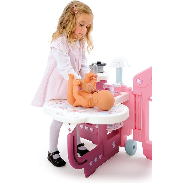 Kącik opiekunki z serii Baby Nurse od Smoby zachwyci każdą dziewczynkę! Podzielony na 3 części: kuchnię, sypialnię oraz łazienkę będzie prawdziwym domkiem dla ulubionej lalki!