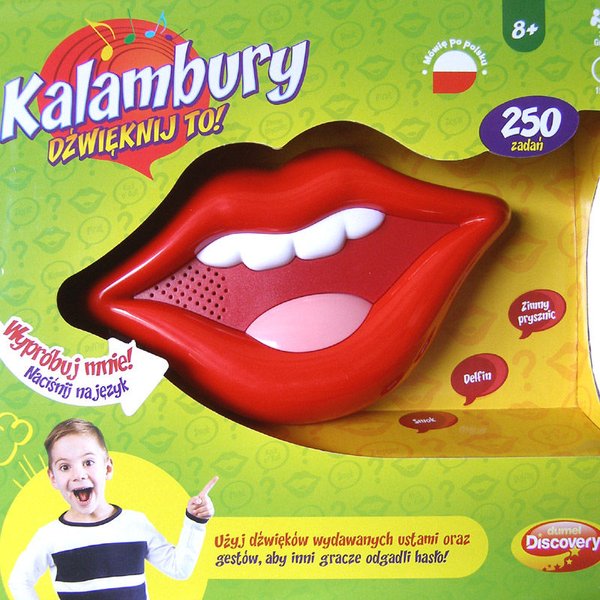 - dwa tryby gry: prezentowanie hasła za pomocą dźwięków wydawanych ustami i gestów (8 lat+) lub bez dźwięku (16 lat+)