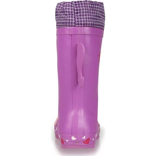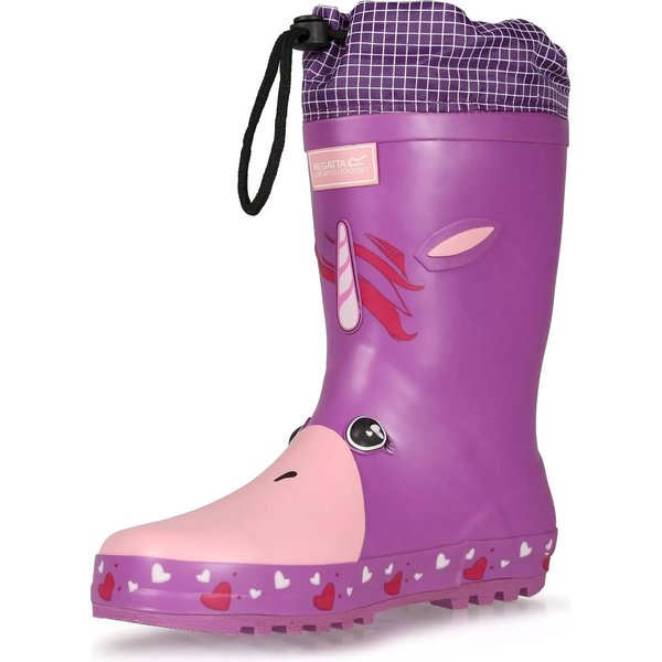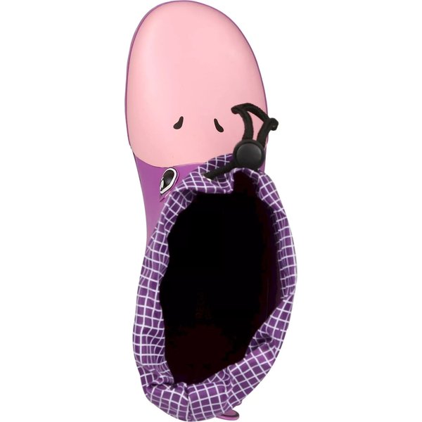 Ciekawa kolorystyka i design przykuwa wzrok i nawiązuje do dziecięcej wyobraźni. Kalosze są nieprzemakalne i trwałe, gdyż zostały wykonane z wulkanizowanej gumy. Ściągacz w górnej części cholewki umożliwia dobre dopasowanie i zapewnia suchość. Atutem jest amortyzowana wkładka, dzięki której stopy mniej się męczą.