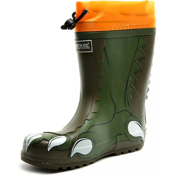 Ciekawa kolorystyka i design przykuwa wzrok i nawiązuje do dziecięcej wyobraźni. Kalosze są nieprzemakalne i trwałe, gdyż zostały wykonane z wulkanizowanej gumy. Ściągacz w górnej części cholewki umożliwia dobre dopasowanie i zapewnia suchość. Atutem jest amortyzowana wkładka, dzięki której stopy mniej się męczą.