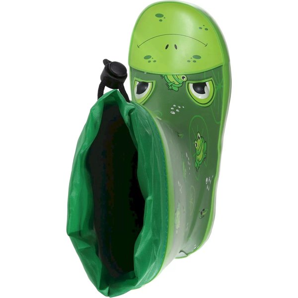 Ciekawa kolorystyka i design przykuwa wzrok i nawiązuje do dziecięcej wyobraźni. Kalosze są nieprzemakalne i trwałe, gdyż zostały wykonane z wulkanizowanej gumy. Ściągacz w górnej części cholewki umożliwia dobre dopasowanie i zapewnia suchość. Atutem jest amortyzowana wkładka, dzięki której stopy mniej się męczą.