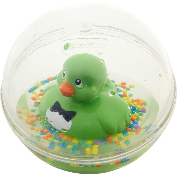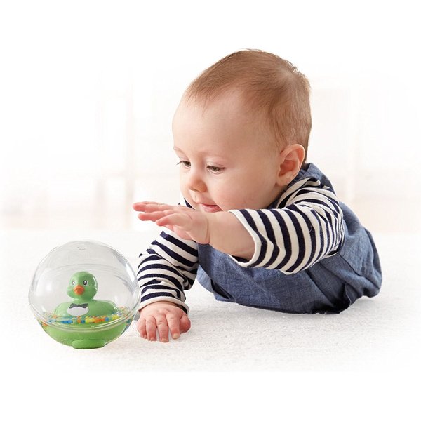 Kultowa zabawka od Fisher Price teraz z kaczuszkami w różnych kolorach! W przezroczystej kuli wypełnionej płynem i kolorowymi perełkami znajduje się urocza kaczuszka. Gdy kula toczy się po podłodze ona sunie wesoło! Świetna zabawa również w kąpieli! Nieważne, jak długo malec będzie próbował zatopić, obrócić czy zanurzyć w wodzie, śliczna kaczuszka i tak wróci na powierzchnię.