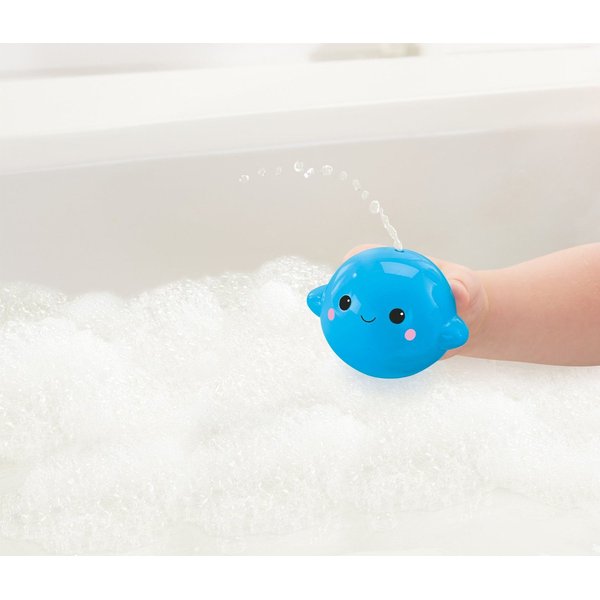 To prawdziwa radość dla malucha. Wesoły wielorybek tryska wodą, rybka posiada sitko, dzięki któremu maluch będzie mógł nabierać i przelewać wodę. Wirujące koło wodne oraz obrotowa rozgwiazda zaciekawią i zachęcą malucha do zabawy. Zabawka umili czas podczas kąpieli, uczy malucha związku przyczynowo-skutkowego, rozwija jego zdolności manualne i motorykę. Jest kolorowa i solidnie wykonana, z trwałych i bezpiecznych materiałów. Dziecko może je wykorzystać również w basenie czy nad morzem.