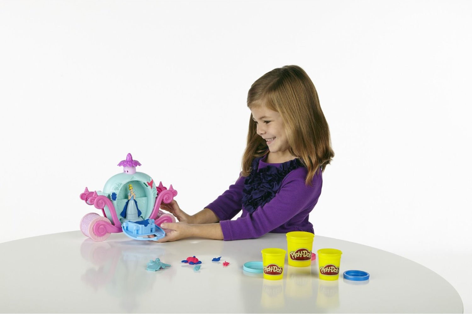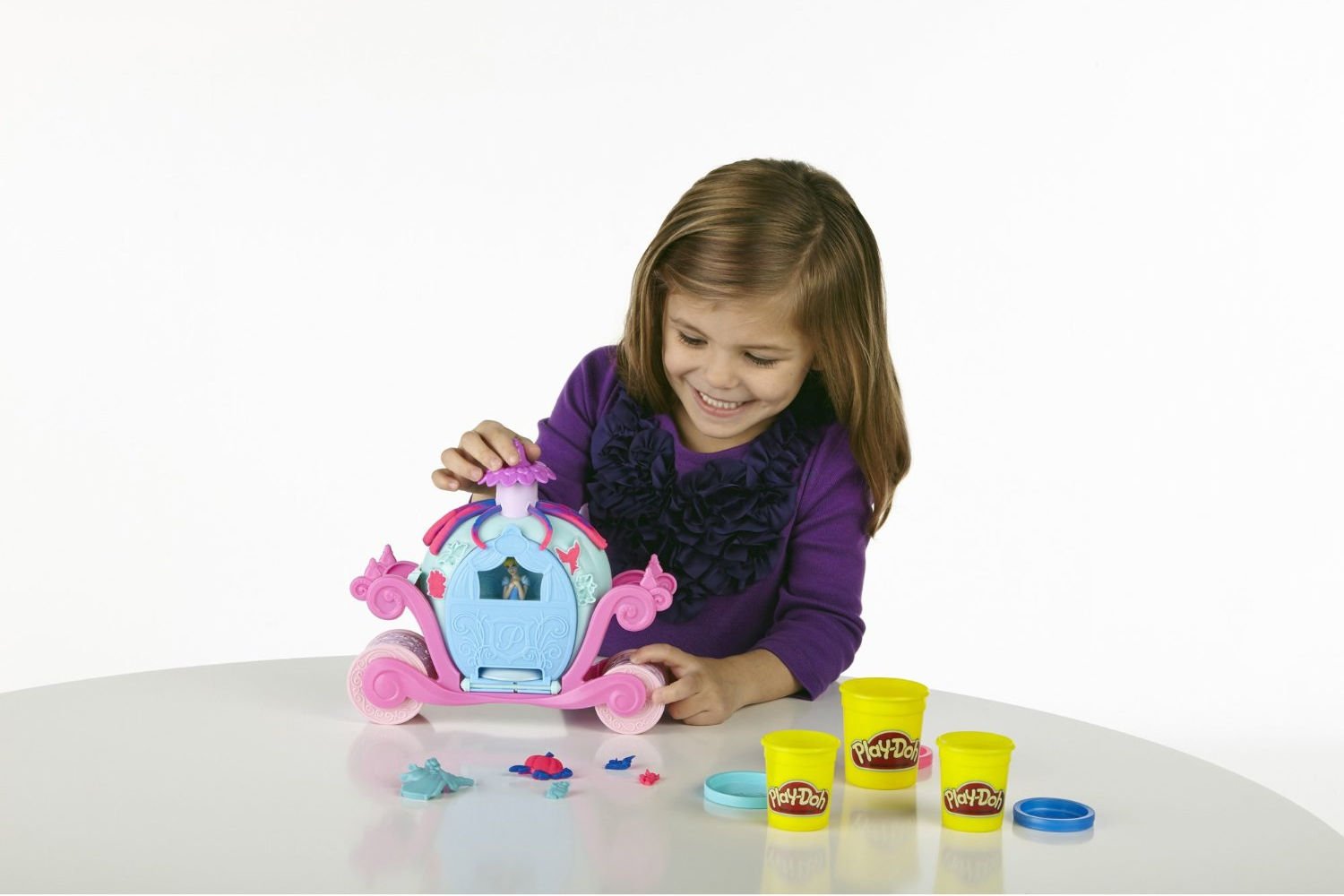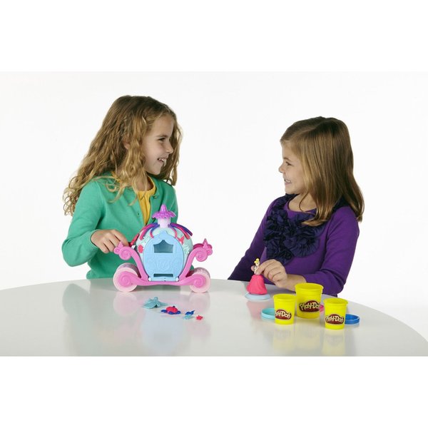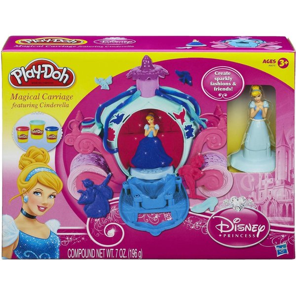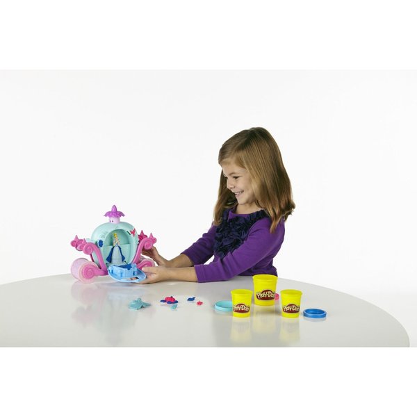 Zmień stare ubrania Kopciuszka w piękną suknię balową z nowym zestawem Karoca Kopciuszka! Gdy Karoca toczy się, tworzy niezwykły ślad szklanego pantofelka Kopciuszka! W zestawie specjalne formy, które m.in. zmieniają myszkę w lokaja! Naciśnij przepiękne winorośle na dachu karocy i zobacz, co się stanie!