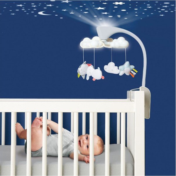 Produkt jest urządzeniem 3w1 - karuzelą, projektorem oraz odtwarzaczem kołysanek i kojących dźwięków. Wprowadzi maluszka w świat dźwięków, światła oraz delikatnego ruchu oraz pozwoli spokojnie zasnąć.