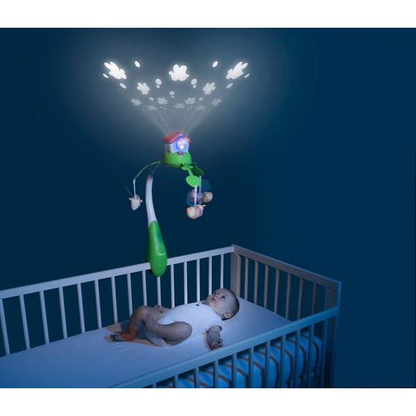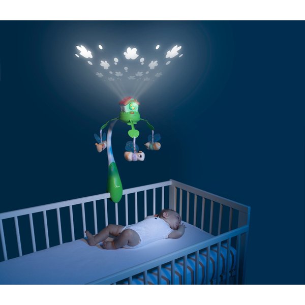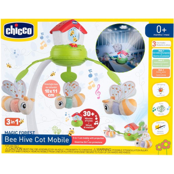 Karuzela niemowlęca Pszczółki Chicco to kultowy produkt w nowej wersji elektronicznej 3 w 1. Dzięki funkcjom projekcji, kolorowym światełkom i relaksującej muzyce, karuzela ta zapewni Twojemu dziecku wiele korzyści. Od 0 do 6 miesięcy, karuzela pełni rolę stacjonarnej karuzeli z funkcją projekcji i obracaniem na łóżeczku dziecka. Od 0 do 36 miesięcy może być używana jako projektor nocny, a od 6 do 36 miesięcy jako centrum aktywności. Karuzela wyświetla pszczoły na suficie, które zmieniają kolory i grają muzykę. Dziecko będzie mogło cieszyć się 30 minutami relaksującej muzyki, a melodie można wyłączyć, aby pomóc dziecku skupić się na bodźcach świetlnych. Karuzela jest kompatybilna z drewnianymi łóżeczkami i wszystkimi kołyskami Chicco Next2Me.