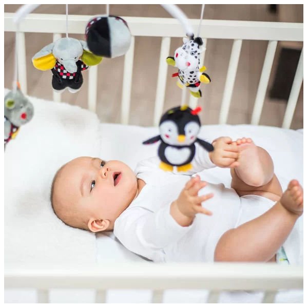 Karuzelka z pozytywką od Babyono, która z pewnością zachęci najmłodszych do zabawy. Maluch będzie miał do dyspozycji liczne zawieszki w postaci wesołych zwierzątek i piłeczki. Ich sympatyczne kształty i intensywne kolory zaciekawiają maluszka, a cicha i melodyjna pozytywka sprzyja błogiemu zasypianiu.