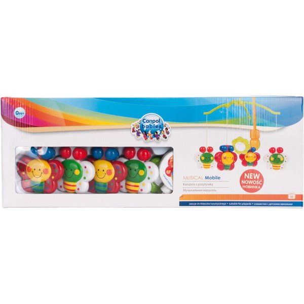 Przeznaczona dla dzieci, które jeszcze nie poruszają się samodzielnie. Zawieszone na niej kolorowe zabawki przyciągają uwagę malucha. Miłe dźwięki pozytywki uspokajają maleństwo i ułatwiają zasypianie. Karuzela zachęca do doskonalenia zmysłu wzroku i rozwija koordynację ruchową.