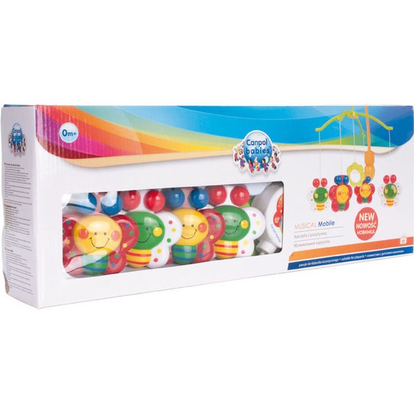 Kolorowa karuzela z motylkami firmy Canpol Babies posiada nowy uchwyt z wewnętrzną powłoką z nieślizgającego się tworzywa i regulacją zacisku. Dzięki temu może być ona zamocowana na różnych typach łóżeczek, zarówno standardowych jak i turystycznych.