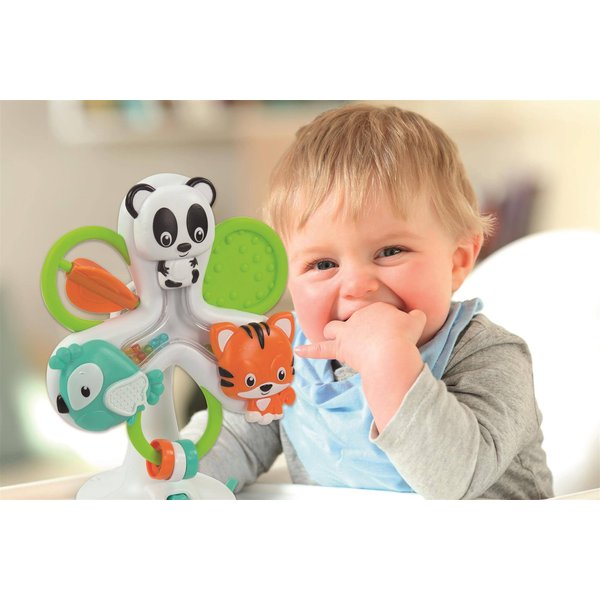 Karuzela ze zwierzątkami od Clementoni, która zachwyci najmłodszych! Które dziecko nie lubi karuzeli? a jeszcze taką, która mogą sami kręcić to już w ogóle frajda. Im szybciej zakręcimy zwierzątka tym szybciej będzie grała muzyka! To kolejny element, który zmobilizuje malucha do rozwijania zdolności manualnych. Zabawka posiada przyssawkę, która ułatwi stabilne jej zamontowanie, dzięki czemu dzieci nie będą miały problemu z jej samodzielną obsługą. Całość została zaprojektowana tak, aby była jak najlepiej dostosowana dla małych dzieci.