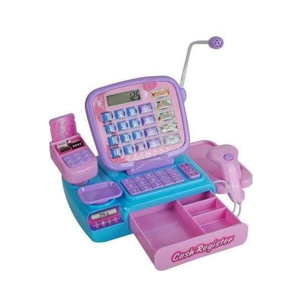 Kasa fiskalna dla dzieci, która jest niezbędnym wyposażeniem każdego, dziecięcego sklepu. Dodatkowe akcesoria dołączone do zestawu pozwolą na stworzenie małego, klimatycznego sklepiku. Jak na profesjonalną kasę przystało posiada ona skaner. Wystarczy zbliżyć go do wypukłej części produktu i nacisnąć guzik. Wysuwana szufladka pozwoli przechowywać banknoty. Nie mogło zabraknąć efektów dźwiękowych, które dodają większych wrażeń podczas całej zabawy. W zestawie znajdują się także artykuły spożywcze.