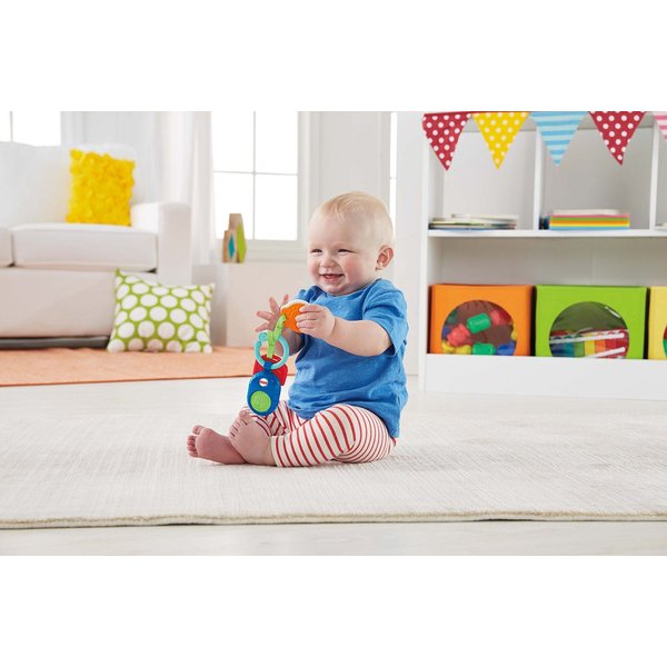 Zestaw grający z kluczykami-gryzaczkami zabawi lub uspokoi dziecko na wiele sposobów, wydając zabawne dźwięki, zaciekawiając intensywnymi kolorami i fakturowaną powierzchnią.