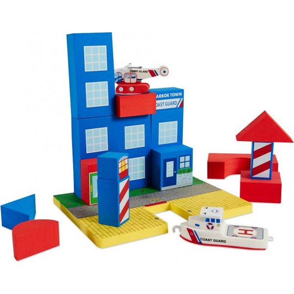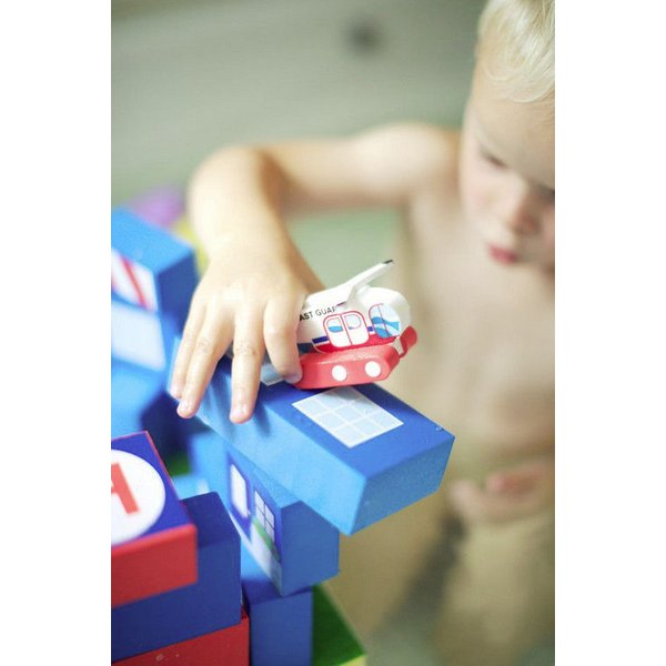 Z klocków możemy stworzyć straż przybrzeżną! W zestawie znajduje się 19 elementów, w tym helikopter i łódź. Wystarczy tylko pobudzić wyobraźnię - od teraz kąpiel to nie tylko pielęgnacja skóry dziecka, także super zabawa.