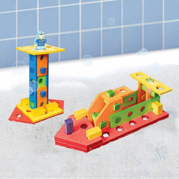 Z klocków możemy stworzyć co tylko przyjdzie dziecku do głowy! W zestawie znajduje się aż 56, z których można wykonać różne budowle. Wystarczy tylko pobudzić wyobraźnię - od teraz kąpiel to nie tylko pielęgnacja skóry dziecka, także super zabawa.