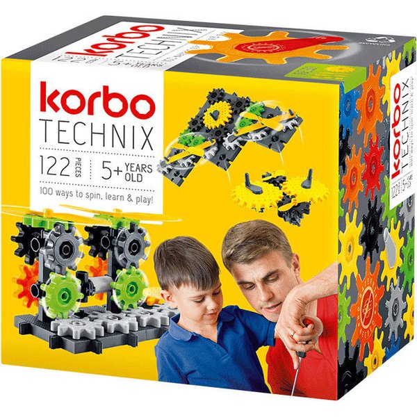 Klocki konstrukcyjne Korbo to produkt, który z pewnością rozwinie u dziecięcą wyobraźnię oraz zmysł techniczny i zdolności manualne. Zestaw składa się z 122 części takich jak: zębatki, korbki i inne elementy, które posłużą do budowy różnorodnych konstrukcji. Barierą w tworzeniu będzie jedynie kreatywność. Jednak to nie wszystko co potrafią te wspaniałe klocki. Dzięki specjalnej budowie dziecko będzie mogło wprawić je w ruch, co doda zabawie atrakcyjności. Zestaw stanowi świetny wstęp do świata techniki i konstrukcji, który poprzez zabawę pozwoli rozwijać umiejętności malucha.