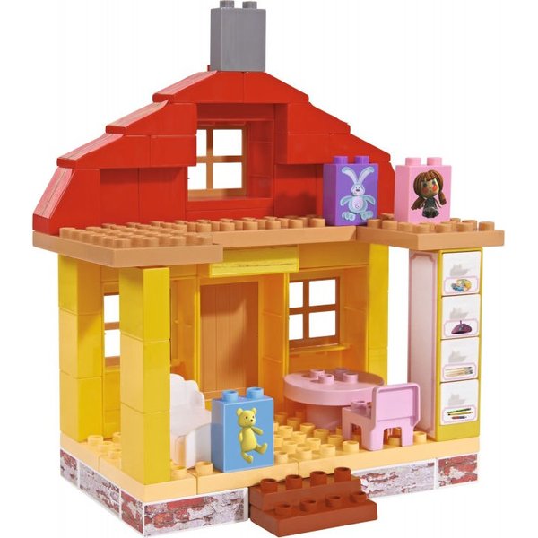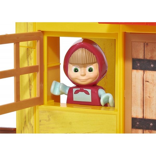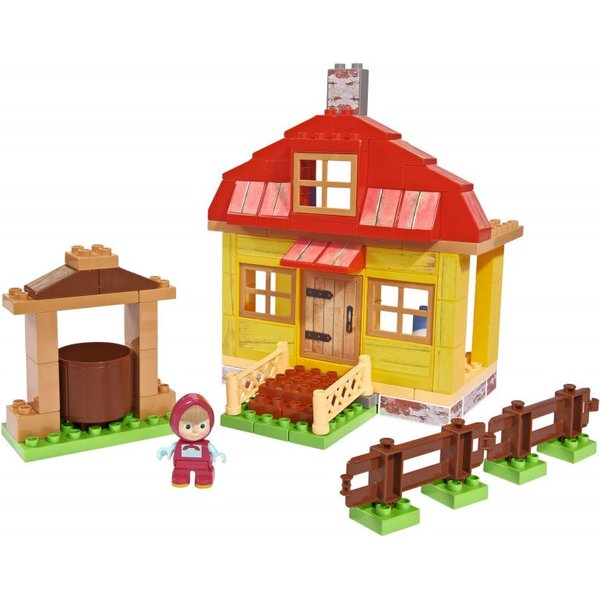 Zbuduj piękny domek dla Maszy! Domek wygląda jakby był stworzony z drewna. Ma czerwony dach z ceglanym kominem oraz wiele okien. Wejście zdobią małe schodki z ozdobną balustradą. Na dworze stoi mini płotek oraz pięknie prezentująca się studnia. W środku jest miejsce do siedzenia i stolik - Masza może zaprosić do środka swojego przyjaciela