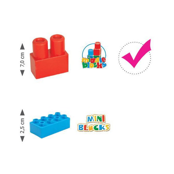 Ze względu na swoje gabaryty są idealnie dostosowane do rączek najmłodszych dzieci a różnorodność form umożliwia tworzenie z klocków rozmaitych budowli pojazdów i postaci, rozwijając w dziecku wyobraźnię i jego zdolności manualne.