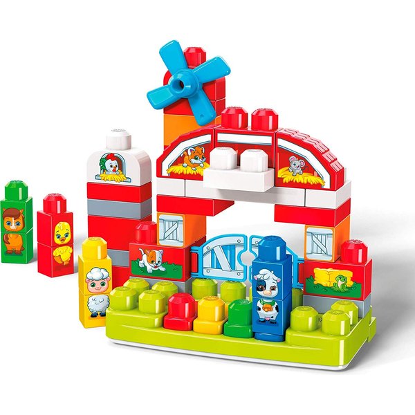 Muzyczna farma przysienie maluchowi wiele radości i zabawy. Z klocków zbuduj kolorową farmę dla uroczych przyjaciół - konika, krówki, kurczaczka oraz owcy. Zbudowana zagroda uczy kolorów oraz maluch ma możliwość poznania odgłosów zwierząt. Każde ze zwierzaków ma swój przycisk muzyczny - muzyka się aktywuje po umieszczeniu zwierzątka na odpowiedni kolor. Silos, obracający się wiatrak oraz stodoła z wahadłowymi drzwiczkami sprawia, że budowla na prawdę przypomina prawdziwą farmę. Układanie klocków rozwija zdolności manualne dziecka, ćwiczy pamięć, wzrok oraz zręczność.