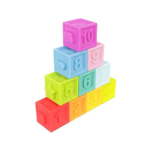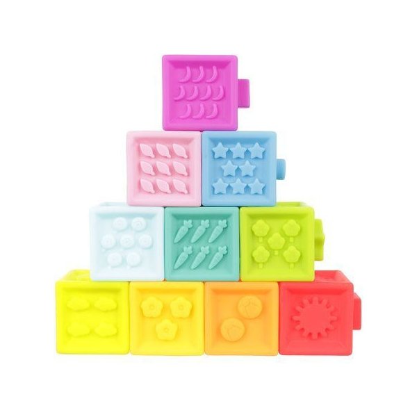 Miękkie klocki sensoryczne, które zapewniają szeroki zakres rozwoju! Każdy bok posiada inną fakturę, co nie tylko pobudzi zmysł dotyku, ale również umożliwi maluchowi przyswojenie cyfr, kształtów, warzyw czy nazw kolorów. Można się nimi bawić na wiele sposobów np. tworzyć z nich wierzę, piramidę czy inne budowle. Dodatkowo jeden z boków posiada otwór, który umożliwia połączenie poszczególne elementy po dopasowaniu odpowiedniego kształtu. Klocki zapewnią wiele godzin wspaniałej, rozwijającej zabawy i z pewnością nie znudzą się szybko!