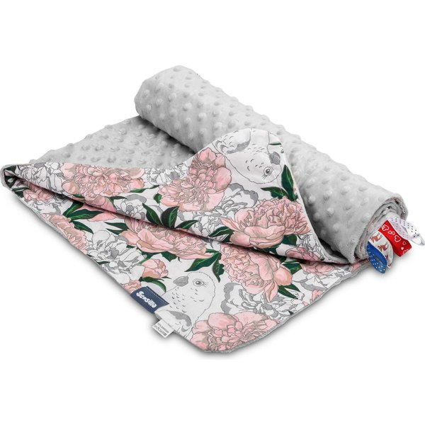Miękki i delikatny kocyk Minky od Sensillo. Wykonany jest w 100% z bezpiecznej i delikatnej dla skóry dziecka bawełny oraz najwyższej jakości tkaniny minky, która nie będzie powodować otarć i zapewni prawidłowy przepływ powietrza. Kocyk jest dwustronny, można go używać w zależności od potrzeb. Idealnie sprawdzi się do łóżeczka, a także podczas spacerów w wózku. Widnieje na nim piękny i barwny wzór, którego design urzeknie każdą nowoczesną mamę, a umieszczone po boku kolorowe paseczki na pewno zainteresują naszego malucha.