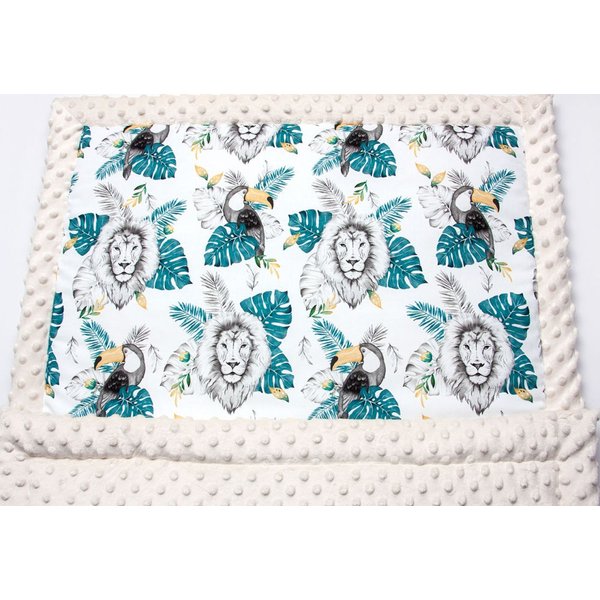 Miękki i delikatny kocyk minky marki Gluck wykonany jest w 100% z bezpiecznej i delikatnej dla skóry dziecka bawełny oraz najwyższej jakości tkaniny minky, która nie będzie powodować otarć i zapewni prawidłowy przepływ powietrza. Kocyk jest dwustronny, można go używać w zależności od potrzeb. Idealnie sprawdzi się do łóżeczka, a także podczas spacerów w wózku. Na kocyku widnieje piękny i barwny wzór, którego design urzeknie każdą nowoczesną mamę, a umieszczone po boku kolorowe paseczki na pewno zainteresują naszego malucha.