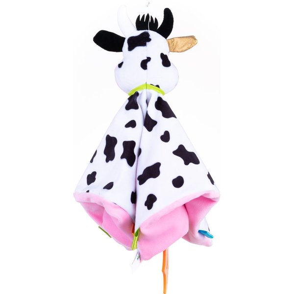 Kocyk krówka od firmy Dumel pobudzi u dziecka zmysł wzroku, dotyku i wyobraźnię. Każdy rodzic wie, jak ważne jest stymulowanie wzroku u niemowlaka. Dlatego kocyk ten będzie dobrym wyborem, aby dostarczyć dziecku odpowiednich bodźców, a przy okazji podarować mu wiernego przyjaciela, który zawsze będzie przy nim. Krówka oprócz typowych dla niej kolorów posiada również metki, które maluszki uwielbiają.
