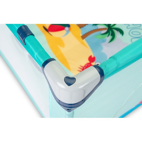 Kolorowy kojec z wesołymi nadrukami będzie idealnym rozwiązaniem do zabawy i drzemki dla maluchów. Szybki i wygodny system składania sprawia, iż będzie odpowiedni na wakacje czy w lato na ogród. Bez problemu można go zabrać ze sobą w podróż czy letni wypad na działkę. Kojec posiada otwierane okno w boku łóżeczka, co ułatwi dziecku wychodzenie.