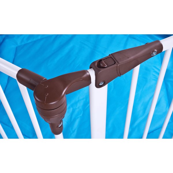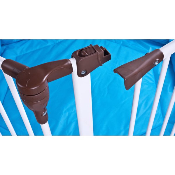 - otwierana bramka zintegrowana z jednym z segmentów pozwala na łatwe wkładanie i wyjmowanie dziecka z kojca