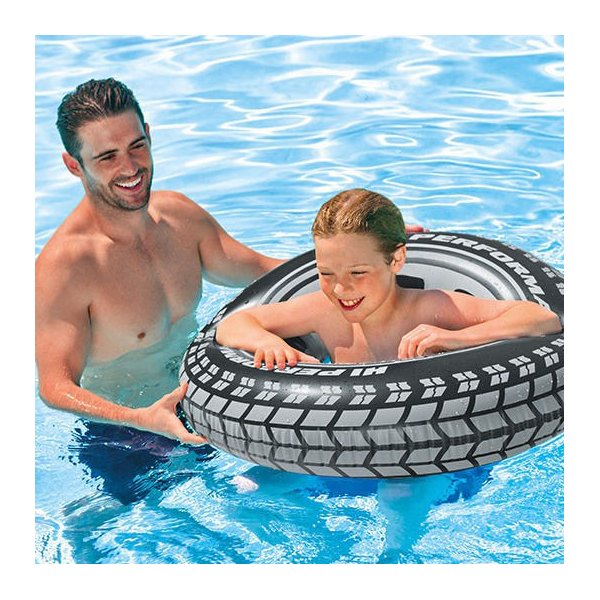 Dla uczących się pływania oraz dla fanów motoryzacji marka Intex zaprojektowała koło dmuchane w kształcie opony.