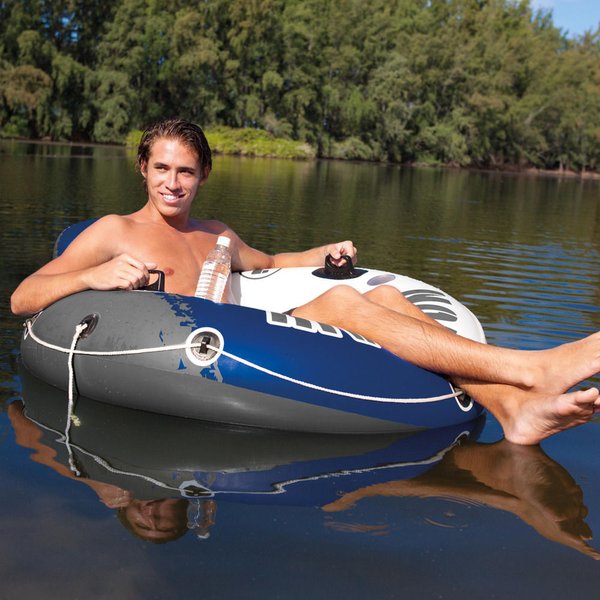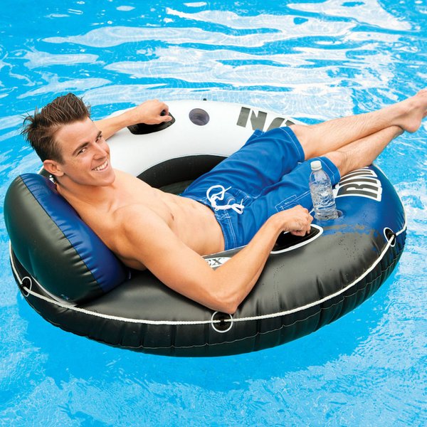 Dmuchane koło z oparciem Rivier Run I marki Intex pozwoli Ci się zrelaksować na wodzie w przerwach między pływaniem.