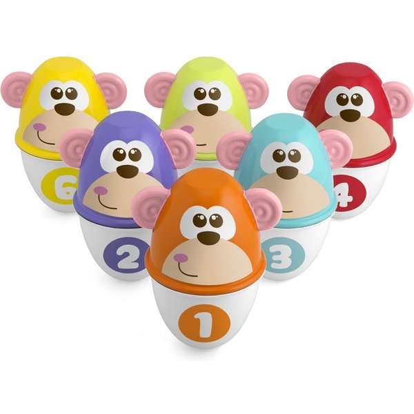 Linia Fit & Fun zabawek Chicco jednocześnie bawi i rozwija poprzez zachęcenie Twojego dziecka do ruchu w najbardziej popularnych dyscyplinach sportu. Te unikalne zabawki kształtują u najmłodszych zarówno zdolności motoryczne, jak i równowagę, precyzję oraz koordynację, jednocześnie bawiąc i umilając im czas. Na zestaw składają się kręgle zaprojektowane w formie sympatycznych, figlarnych małpek. Każdą z sześciu kolorowych figur można przepołowić i ułożyć z nich barwne, 12-elementowe wieże. To doskonały trening kreatywności dla Twojej pociechy. Dodatkowo, aby w naturalny sposób zachęcić najmłodszych do nauki liczenia, kręgle zostały ponumerowane.