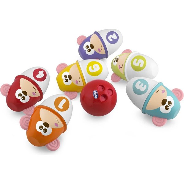 Fit & Fun Kolorowe Kręgle marki Chicco to unikalny komplet do gry w kręgle dla dzieci od 12. miesiąca życia.