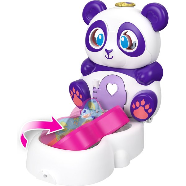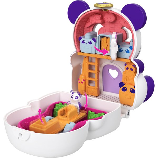 Twoja pociecha będzie mogła zabrać ze sobą ulubioną postać wraz z akcesoriami, aby wszędzie gdzie tylko zapragnie odtwarzać miniaturowe przygody Polly. Kompaktowy zestaw ma teraz kształt misia pandy i otwiera się na 2 sposoby: tradycyjnie i nietypowo - o 270 stopni, ukazując śliczny domek z maleńkimi, otwieranymi z przodu drzwiczkami. Przekręcana kompaktowa podstawa zapewnia dodatkowe miejsce do zabawy. Ciekawe akcesoria wraz z uroczą pandą oraz lalka Polly z 5 punktami zgięcia umożliwią kreatywną zabawę i wymyślanie wielu nowych przygód.