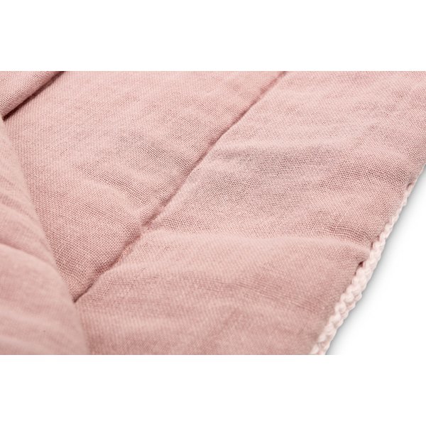 Komplet do łóżeczka od Sensillo wykonany został z połączenia muślinu oraz bawełny. Połączone razem tworzą zestaw najwyższej jakości o eleganckim wyglądzie. Korzystać możemy z niego cały rok ponieważ świetnie sprawdza się zarówno w ciepłe letnie dni jak i w zimie. Kołderka wypełniona jest antyalergicznym wkładem. Wymiary kompletu sprawiają, że idealnie sprawdzi się w łóżeczku, gondoli czy kołysce.