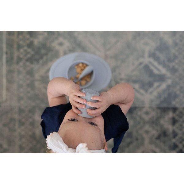Komplet silikonowych naczyń, poza nowoczesnym, ładnym designem i ciekawymi kolorami oferuje również wygodę użytkowania. Wszystkie elementy zestawu posiadają zaokrąglony, ergonomiczny kształt i gładkie brzegi, które ułatwiają rodzicowi i dziecku trzymanie naczynia. Dodatkowym atutem jest duża podkładka razem z miską, która zabezpieczy stół przed bałaganem w trakcie posiłku.