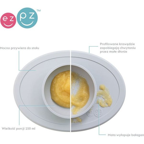 "Mniej bałaganu, więcej frajdy" to motto amerykańskiej marki EZPZ (Easy Peasy), która stworzyła innowacyjne, silikonowe naczynia do karmienia maluszka.