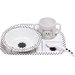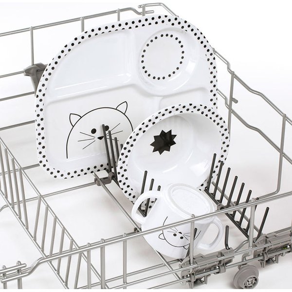 Designerski zestaw naczyń, w którym znajdziemy talerzyk, miseczkę, łyżeczkę i kubek są praktyczne i ułatwią podanie posiłku naszemu szkrabowi. Dzięki trzem komorom możemy podzielić obiadek, a maluszkowi będzie łatwiej poznawać nowe smaki.