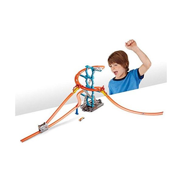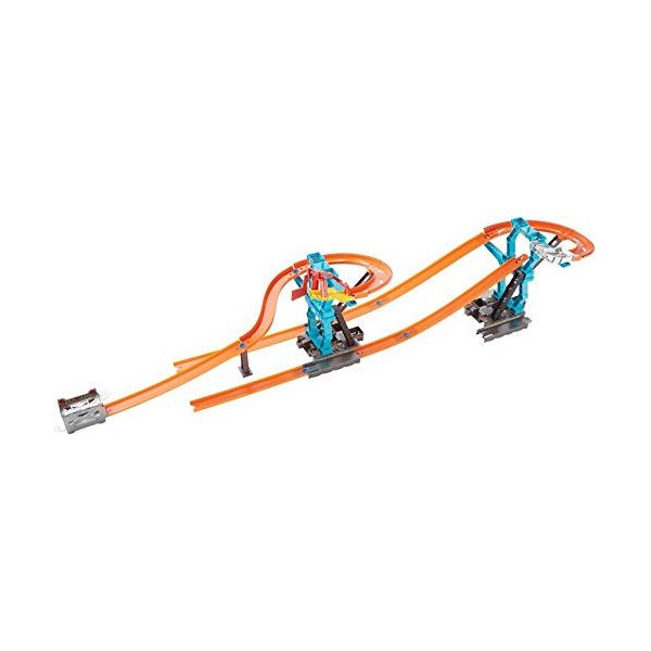 Twoje samochody Hot Wheels mogą mknąć po spiralach i ostrych zakrętach, a także wykonywać kaskaderskie popisy. Jednocześnie po torze może się ścigać kilka pojazdów, a jeden samochód może zwolnić blokadę innemu, dzięki czemu na torze ciągle coś się dzieje i akcja ani na chwilę nie zwalnia. Specjalne segmenty umożliwiają budowanie i konstruowanie wymyślnych torów w dowolnym kierunku - w poziomie lub w pionie - i tylko od Ciebie zależy, jak będzie wyglądać idealny tor wyścigowy. Zestaw można łączyć z innymi torami Hot Wheels, dlatego zabawa nigdy się nie znudzi i wciąż będzie dostarczać dużo frajdy.