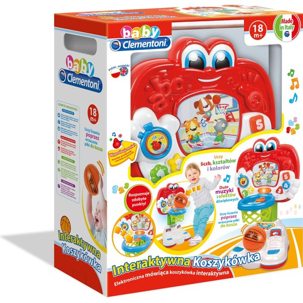 Interaktywna koszykówka umożliwia prawdziwy trening - samodzielny i w towarzystwie przyjaciół. Piłka znajdująca się w zestawie wykonana jest z elastycznego materiału, dzięki czemu zabawa w sposób bezpieczny może odbywać się także w domu.Interaktywna bramka oddziałuje na najmłodszych motywująco poprzez aktywację serii zabawnych efektów dźwiękowych i świetlnych po każdym celnym rzucie. Dodatkowo zabawka liczy zdobyte punkty razem z maluchem. Uczy cyfr, kształtów i kolorów, a także języka angielskiego!