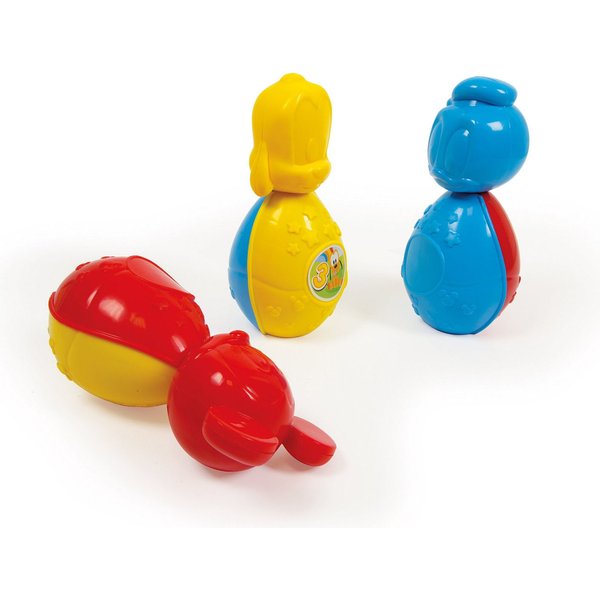 Zestaw składa się z 3 kolorowych kręgli w kształcie myszki Miki, kaczora Donalda i pieska Pluto oraz miękkiej, gumowej piłki. Intensywne kolory oraz wesołe buzie figurek zachęcają malucha do wspólnej zabawy.